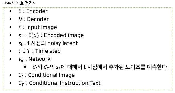 (InstructPix2Pix의 근간이 되는 기법이므로 해당 논문을 직접 분석해 보는 것을 추천)
