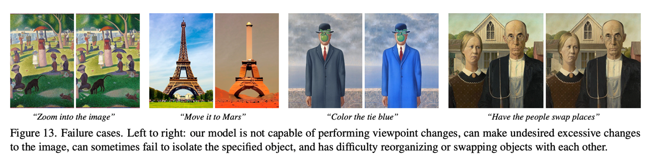 - 학습데이터에 존재하지 않는 이미지 편집 기능에 대해서는 수행할 수 없다.