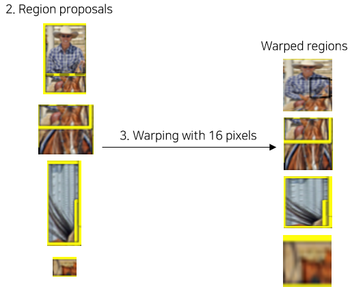 - R-CNN에서 Warp는 이미지의 사이즈를 변형한다는 의미(Reshape와 비슷하다)