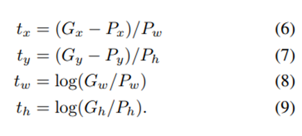 - P = (Px, Py, Pw, Ph) : 예측한 bounding box coordinate