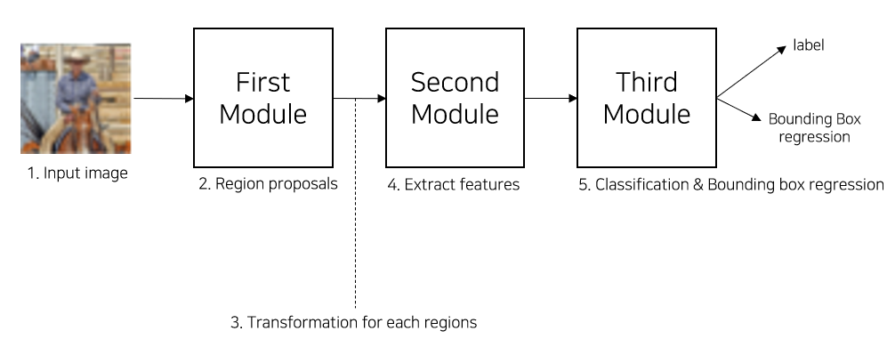 2) R-CNN을 3개의 Modules로 표현