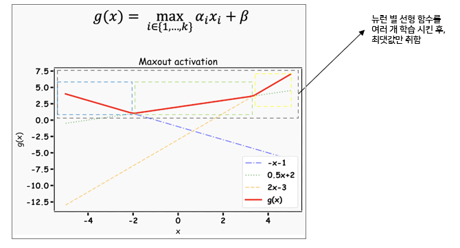 - 활성화 함수를 piecewise linear function이라고 가정했을 때, 각 구간별 최댓값만 취하는 함수