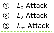 C & W Attack은 Distance method에 따라 L_0, L_2, L_∞ 3가지 방법이 존재한다.