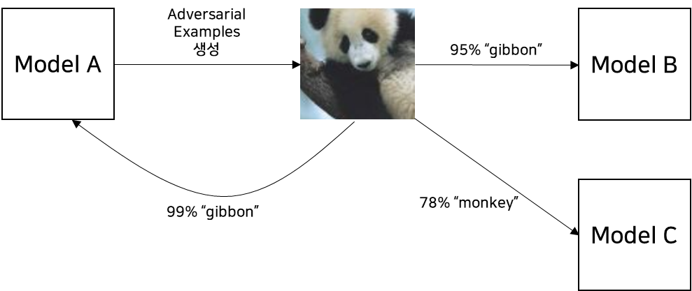 Adversarial example을 생성한 Model외의 다른 Model에도 High-Confidence로 Attack이 적용되는 것