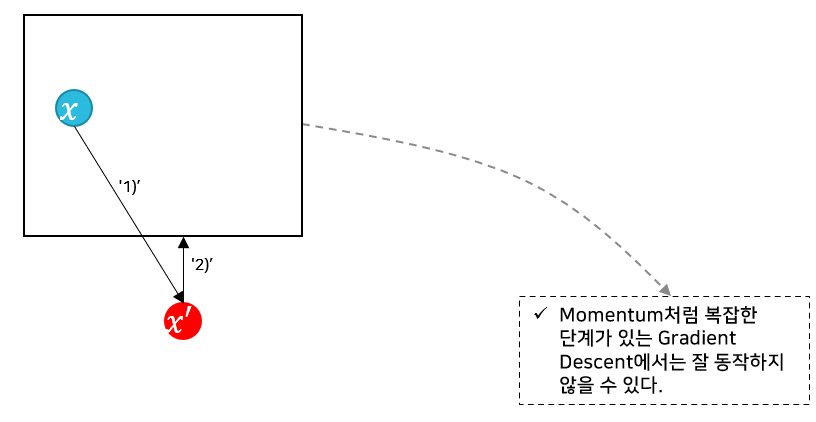 한번의 미분으로 빠르게 동작하지만, 최적의 Adversarial perturbation을 생성하는 것은 아니다.
