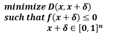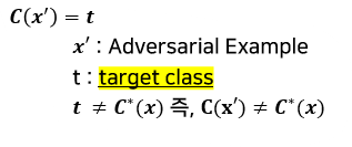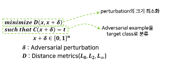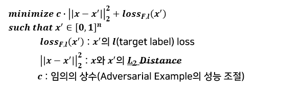 즉, Adversarial Perturbation의 크기는 줄이고(눈에 띄지 않게), target class로 분류되는 confidence는 높이는 것