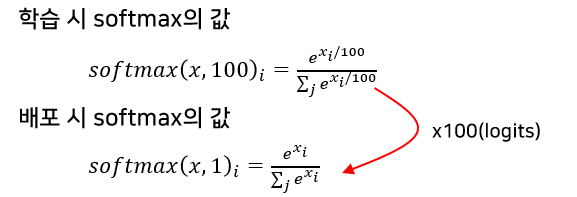 Logits 값을 T배로 증가시키는 특징이 있다.