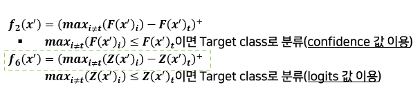 결론적으로, f6 function이 가장 성능이 좋았기 때문에 C&W Attack에 사용했다.