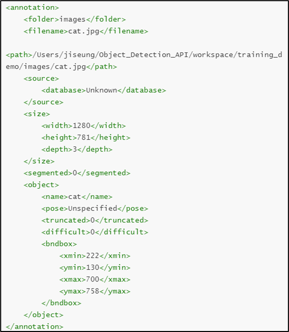 labelImg로 생성된 .xml 파일 형태