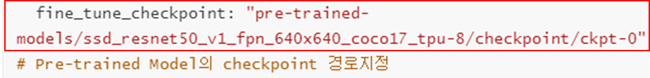 - 생성한 폴더에 pre-trained model의 pipeline.config 파일 저장