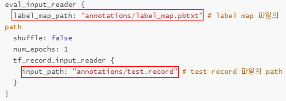 모델 평가 데이터 label map, record 경로 지정