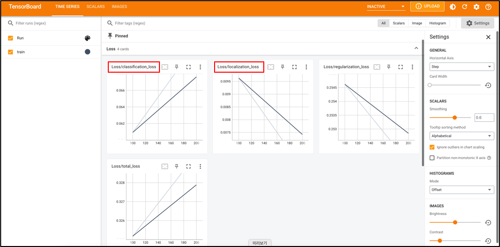python model_main_tf2.py --model_dir=[MODEL_FOLDER] --pipeline_config_path=[CONFIG_FILE_PATH] 실행