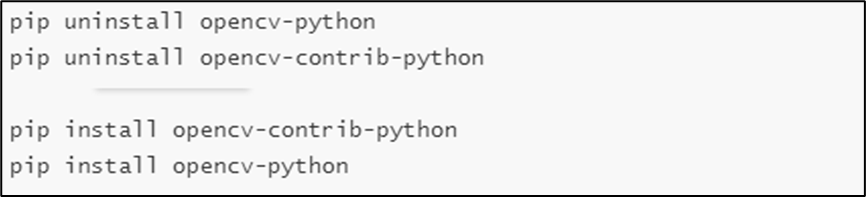 cv2 패키지 폴더 삭제 후 다음의 명령어 실행 (패키지 재설치)