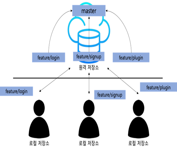 master 브랜치의 메인 코드를 중심으로 기능을 개발하고 병합